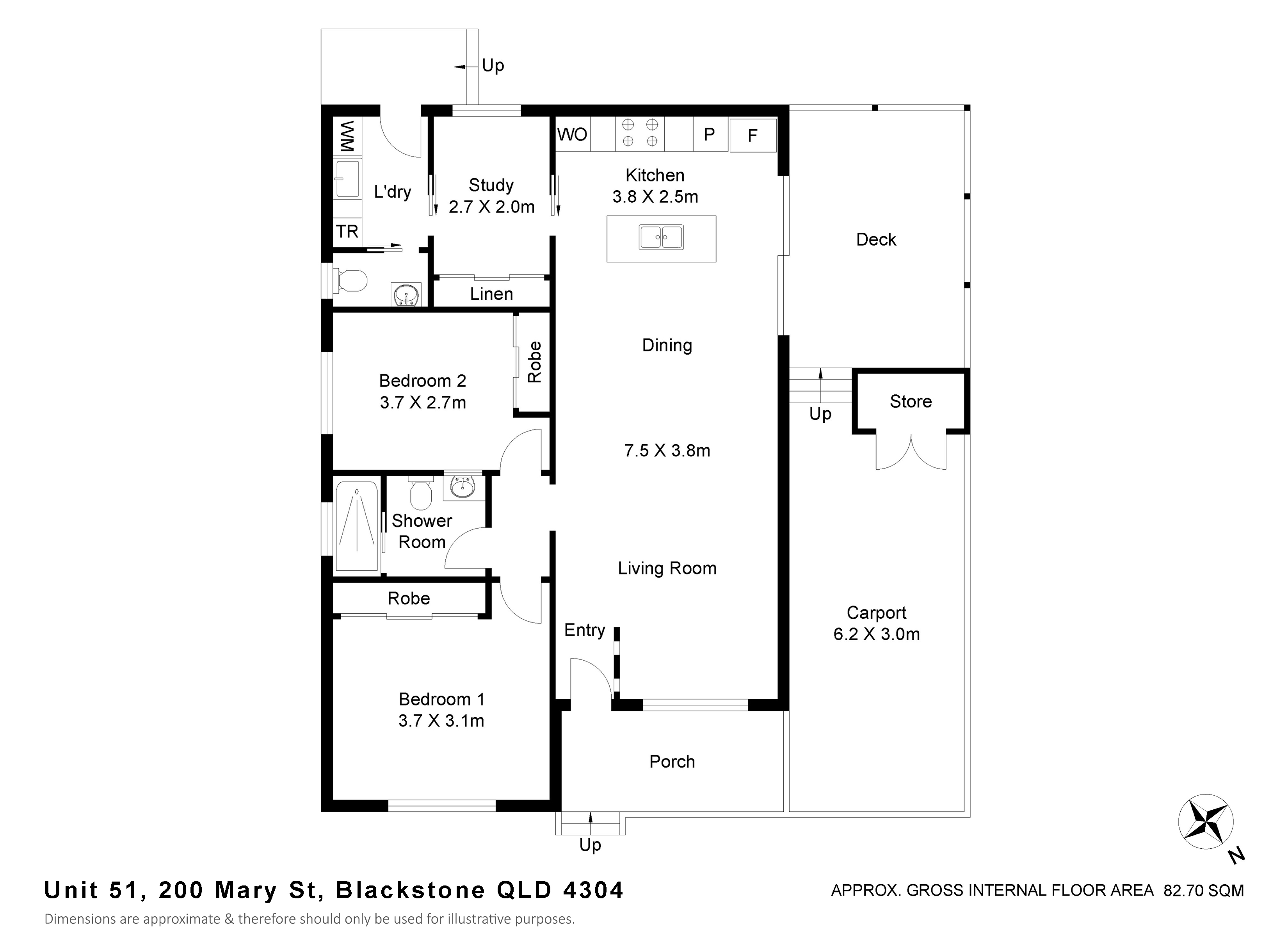 - Open-plan living / dining area with large deck area, complete with block out blinds